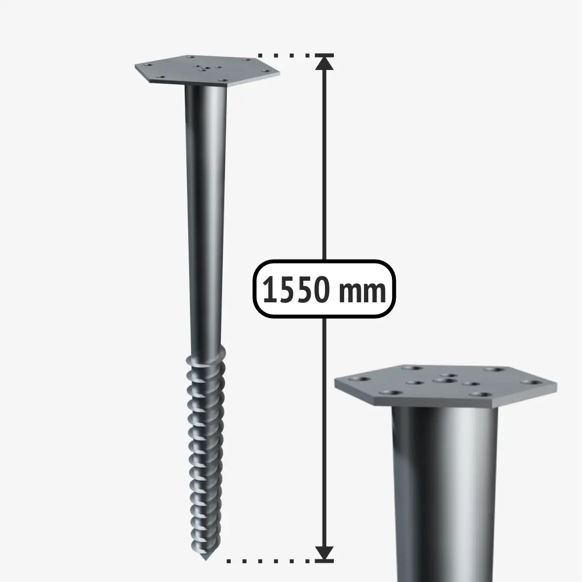 Šio modelio sraigtinis pamatas tinkamas dideliems statiniams. 76 mm vamzdžio diametras ir 3,5 mm metalo storis atlaiko apkrovas iki 3000 kg. Priklausomai nuo grunto ir pasitarus su architektais, sumontavus šiuos sraigtinius polius galima statyti karkasinius namus. M-tipo sraigtinio polio plokštelė skirta atremti montuojamam karkasui. Jei nepavyko sumontuoti sraigtinių pamatų vienoje tiesėje, nieko baisaus, nes plokštelė plati ir nebūtina, kad karkasas remtųsi tiesiai per vidurį. Taip pat plokštelėje yra vieta montuoti ilgasriegiui ir papildomos skylės, jei karkasas nepataiko per centrą. Ant sraigtinio polio plokštelės taip pat galite prisukti bet kokį Jums tinkantį laikiklį. Ilgasriegio pagalba galėsite karkasą sumontuoti milimetrų tikslumu. Šiam sraigtiniam pamatui montuoti reikės naudoti sukimo įrangą.