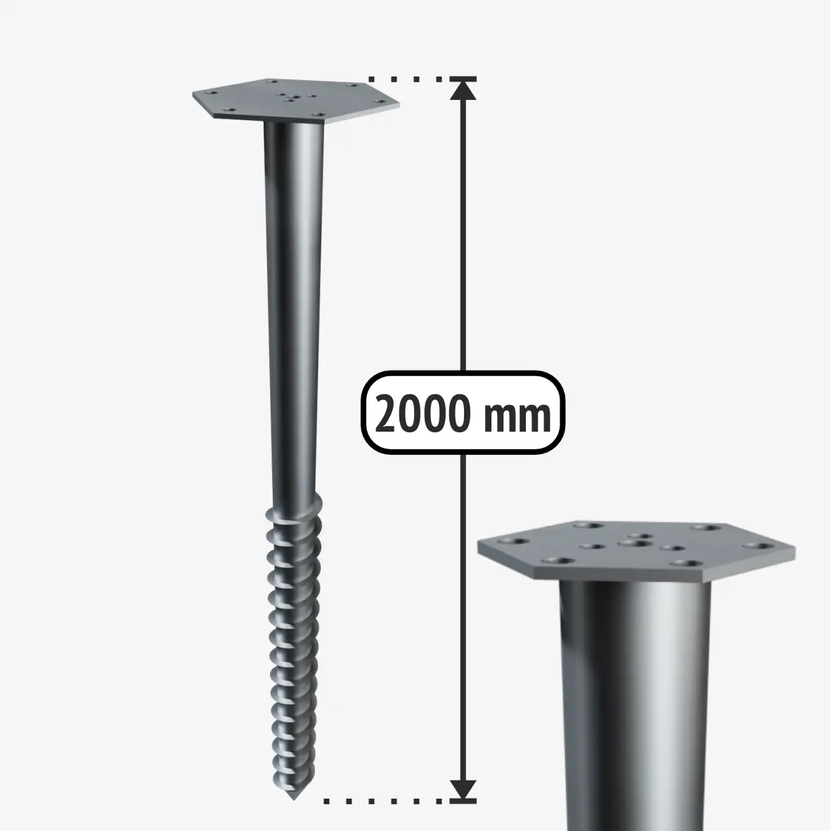 Šio modelio sraigtinis pamatas tinkamas dideliems statiniams. 76 mm vamzdžio diametras ir 3,5 mm metalo storis atlaiko apkrovas iki 4000 kg. Priklausomai nuo grunto ir pasitarus su architektais, sumontavus šiuos sraigtinius polius galima statyti karkasinius namus. M-tipo sraigtinio polio plokštelė skirta atremti montuojamam karkasui. Jei nepavyko sumontuoti sraigtinių pamatų vienoje tiesėje, nieko baisaus, nes plokštelė plati ir nebūtina, kad karkasas remtųsi tiesiai per vidurį. Taip pat plokštelėje yra vieta montuoti ilgasriegiui ir papildomos skylės, jei karkasas nepataiko per centrą. Ant sraigtinio polio plokštelės taip pat galite prisukti bet kokį Jums tinkantį laikiklį. Ilgasriegio pagalba galėsite karkasą sumontuoti milimetrų tikslumu. Šiam sraigtiniam pamatui montuoti reikės naudoti sukimo įrangą.